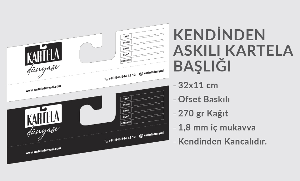 KENDİNDEN ASKILI KARTELA BAŞLIĞI